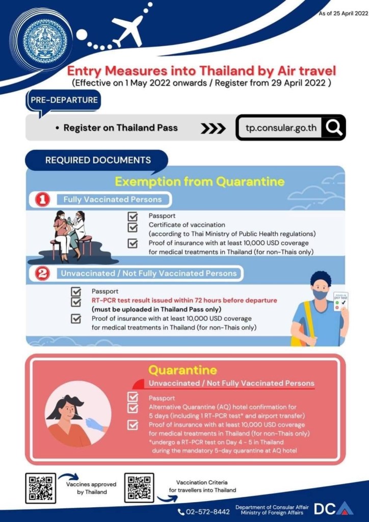 1. ThailandPass QR Code: A mandatory official document issued by the Thai Embassy or Consulate to Thai nationals and Non-Thai nationals who are permitted to enter Thailand. It confirms that you meet the entry requirements as set by the Thai government and you are accepted to enter Thailand.